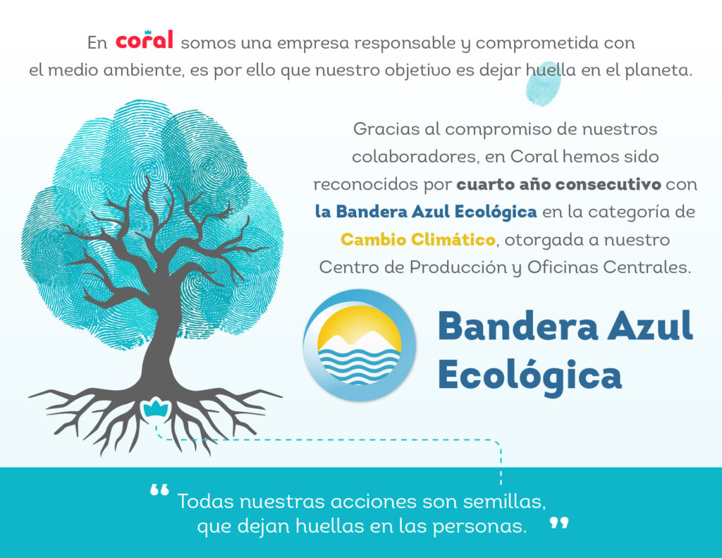 En Coral nos sentimos orgullosos de compartir que, por cuarto año consecutivo, hemos sido galardonados con la Bandera Azul Ecológica en la categoría de Cambio Climático 2024, un reconocimiento que reafirma nuestro compromiso con la sostenibilidad y el cuidado del medio ambiente.